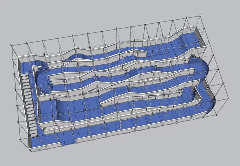 Das Ergebnis: beliebig große, flexible und skalierbare Bikeparks – vom kompakten Event-Park bis zur mehrstöckigen Indoor- oder Outdoor-Anlage.